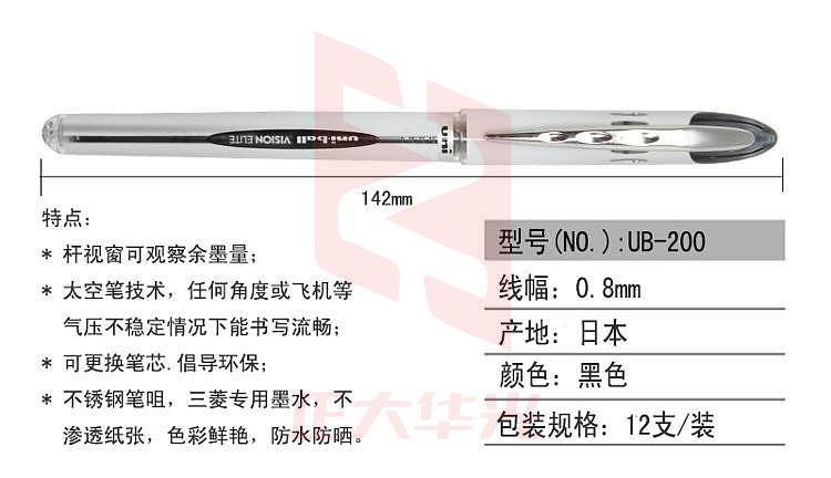 三菱 0.8mm航空水笔/走珠笔UB-200(用UBR-90,黑色,12支/盒) 按支销售 FLNT10211449132649