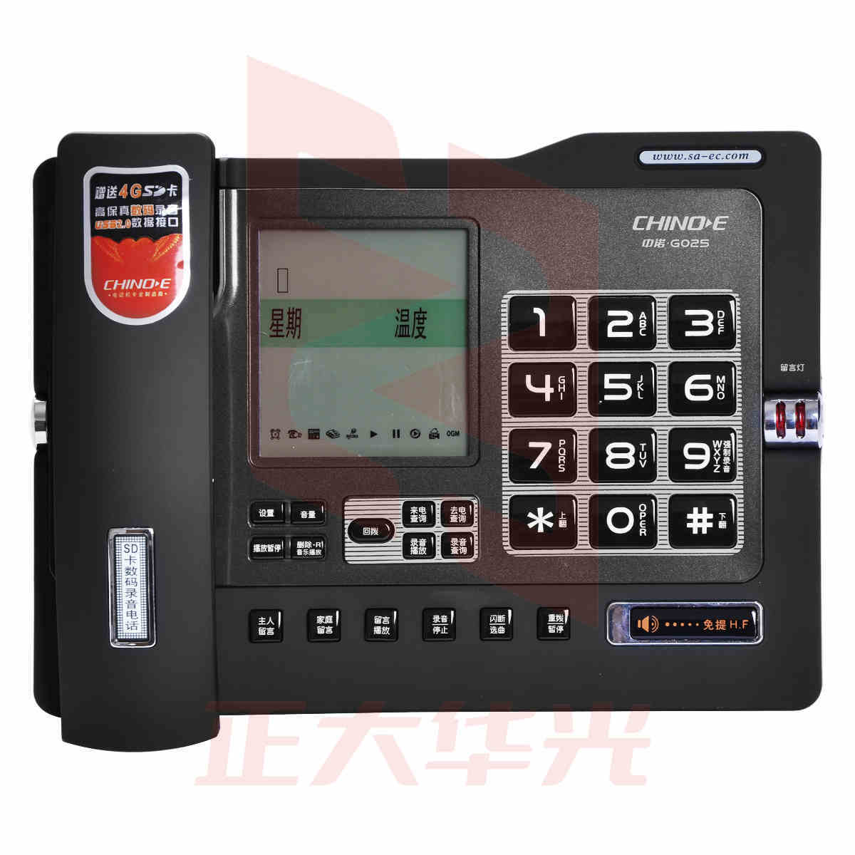 | 中诺(CHINO E)G025 数码录音电话机/座机/固定电话 可扩充SD卡【品牌】中诺/CHINO E【型号】G025【类型】数码录音有线电话【放置方式】座式【接口】双接口【特色】 | ![]() |