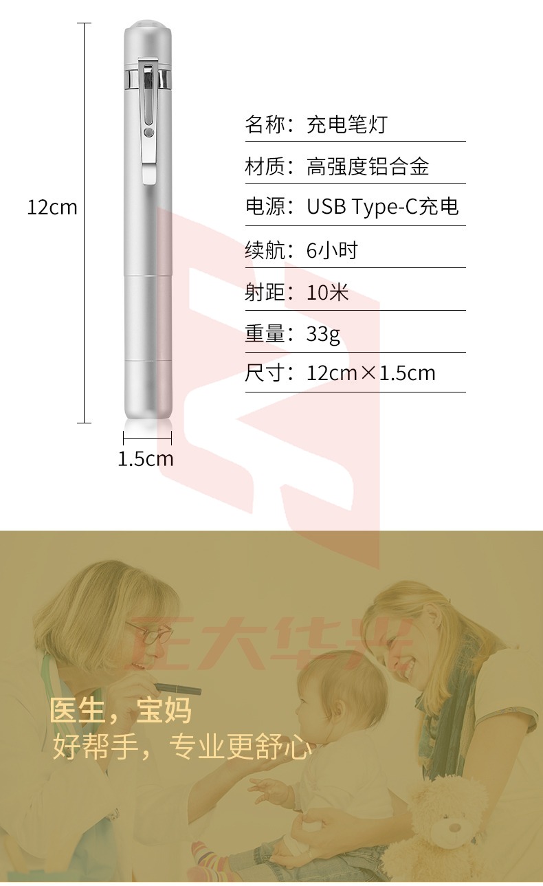 瑞生生护士用瞳孔笔可充电幼儿园晨检小手电筒