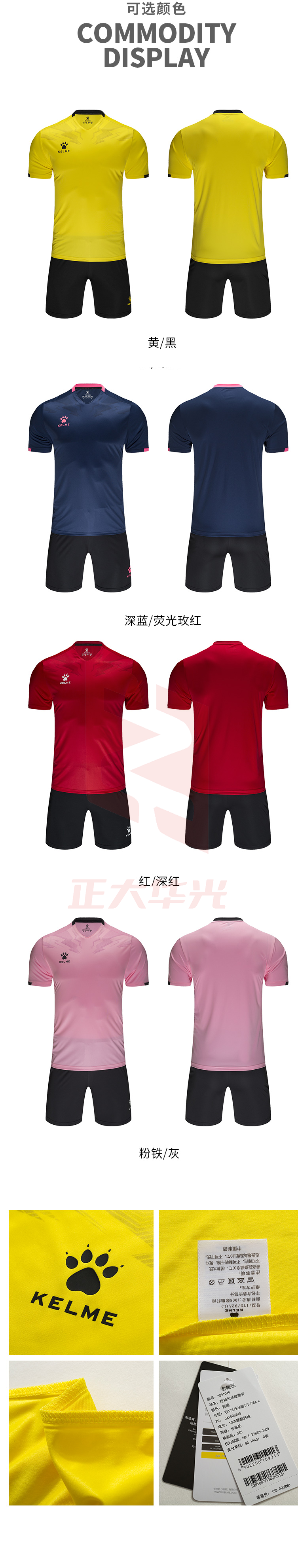 卡尔美 足球服套装男定制比赛训练服队服 短袖球衣3891049 红/深红(S-4XL) 下单前请咨询颜色及尺码)