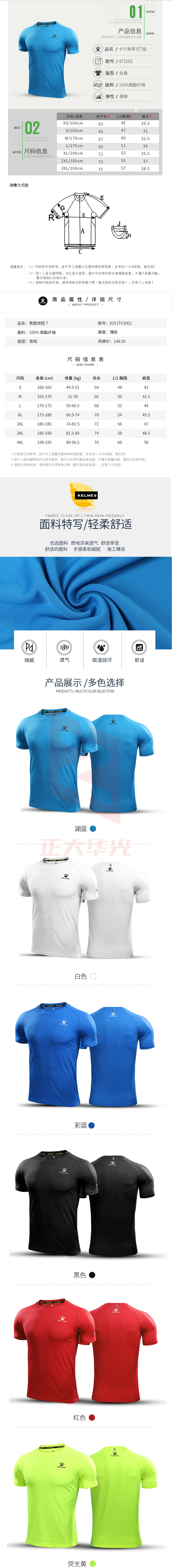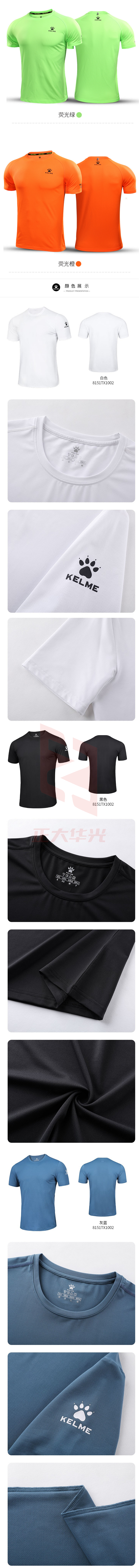 卡尔美夏季休闲男运动T恤快干透气圆领跑步短袖871002 彩兰 (S/165-3XL/190 下单前请咨询颜色及尺码)