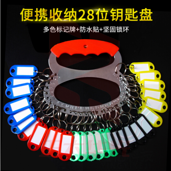 钥匙盘钥匙环圈钥匙链可标记钥匙扣宿舍钥匙管理收纳用品手提金属钥匙管理牌 28位带标记牌 XTGM202306011139320