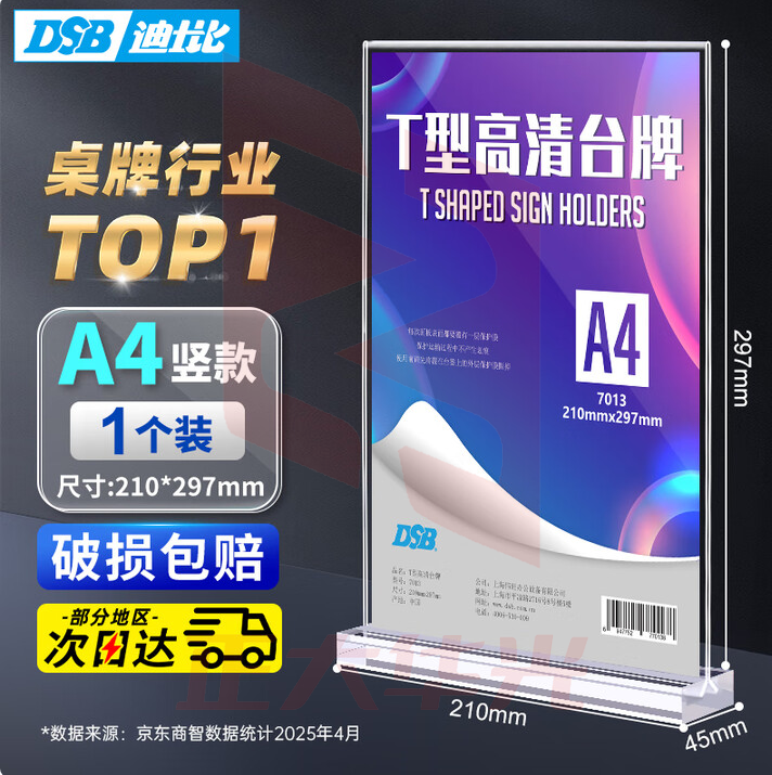 DSB(迪士比)桌牌席卡亚克力T型台卡台签 148mm*210mm 竖款 LSAF09250810591944