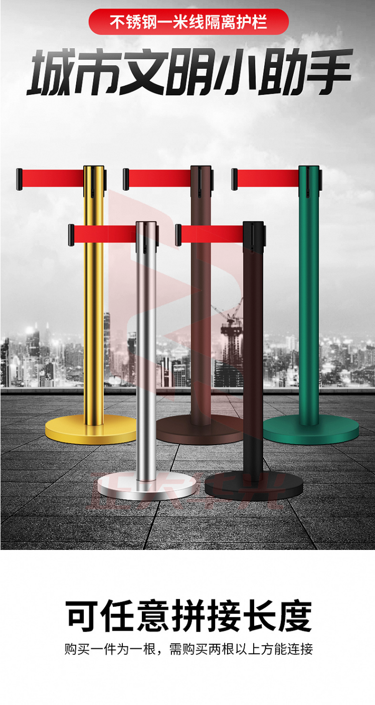 腾驰 不锈钢一米线栏杆警戒线隔离带伸缩带 道路护栏围栏酒店机场学校排队加厚加重ZA1402钛金色2米线