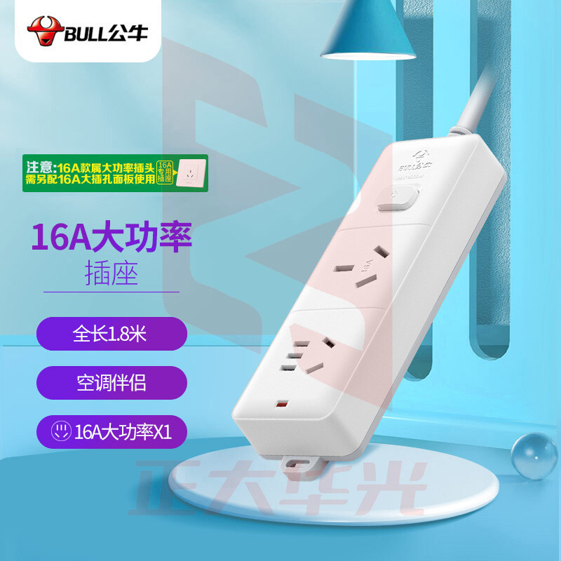 公牛(BULL)大功率16A插座/空调插座/插线板/插排/排插/接线板 2位总控全长1.8米 GN-S102D(XTGM202307191351241)