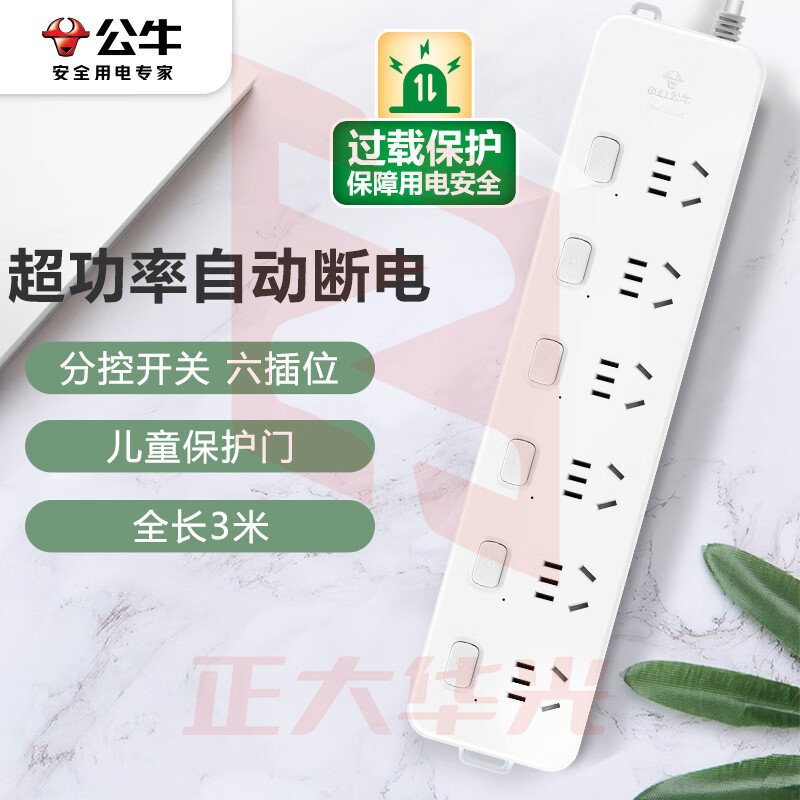 公牛(BULL)GN-313 插座/插线板/插排/排插/接线板/拖线板 6位分控全长3米 超功率保护插座 XTGM202307191351537