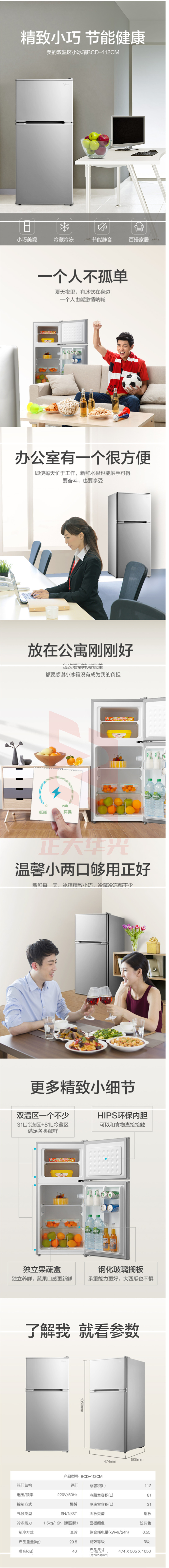美的 BCD-112CM 冰箱 112升 小型 双门 静音 浅灰色