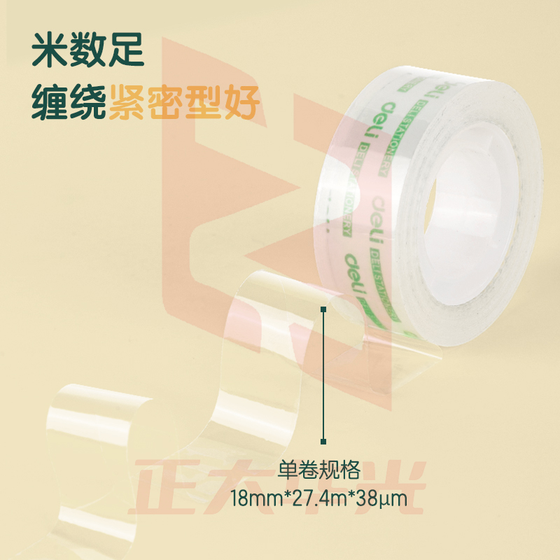 得力30010易撕型文具胶带18mm*30y*38um(高透)(1卷/袋)XTGM02281215398362