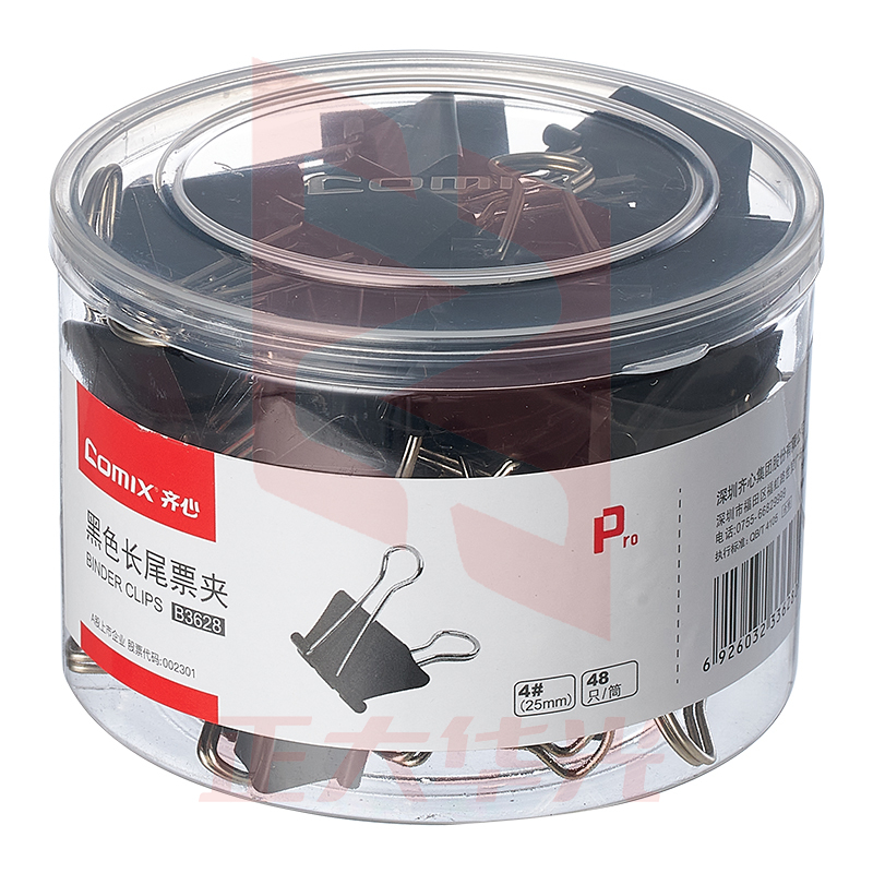齐心 B3628黑色长尾票夹 4# 25mm 48只/筒 XTGM01281549584056