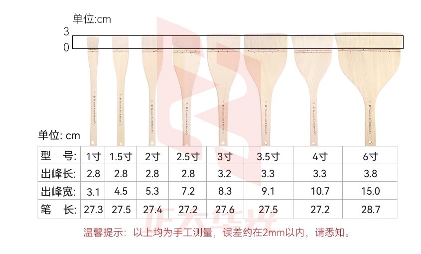 中盛画材 羊毛刷子水粉油画丙烯颜料绘画专用笔软毛清洁涂料乳胶油漆刷无痕刷烧烤烘培1寸单把(4个起订)