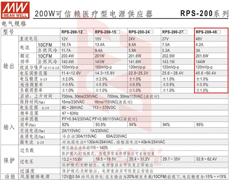 明纬(MEANWELL)RPS-200-12可信赖型电源供应器(200W左右) 12V16.7A输出 无配线
