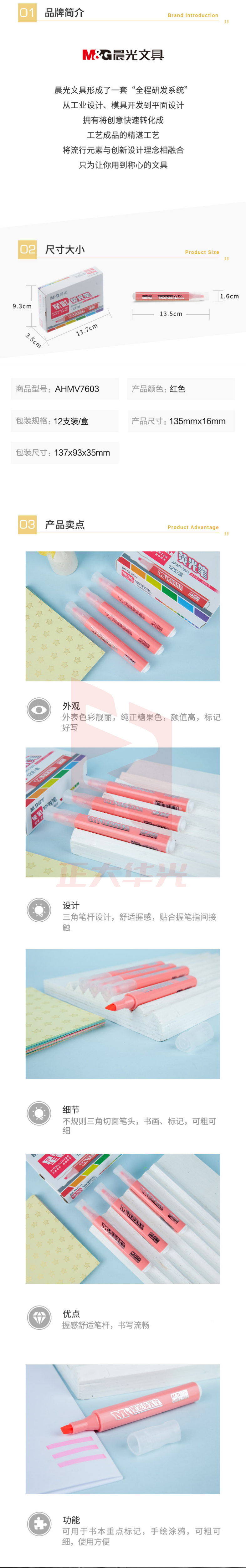 晨光 红色荧光笔 记号笔 12支/盒 AHMV7603