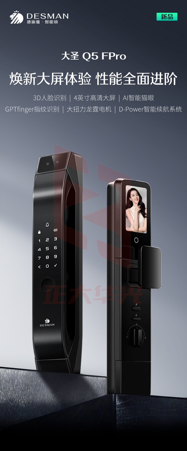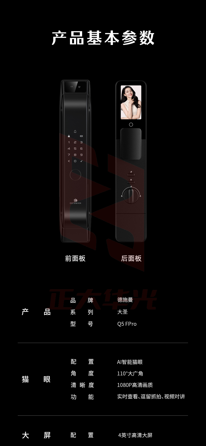 德施曼智能门锁人脸猫眼大屏智能锁密码锁指纹锁大圣Q5FPRO