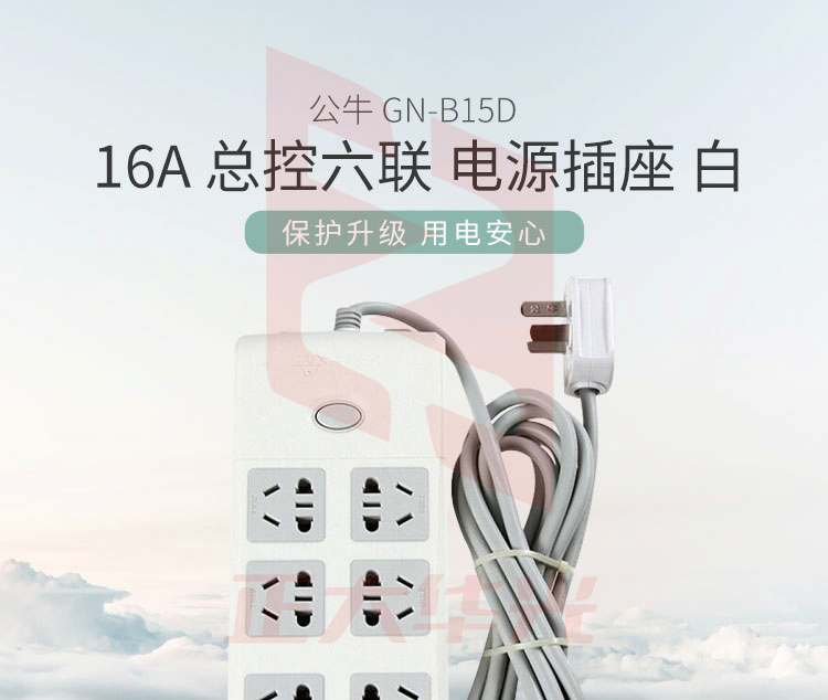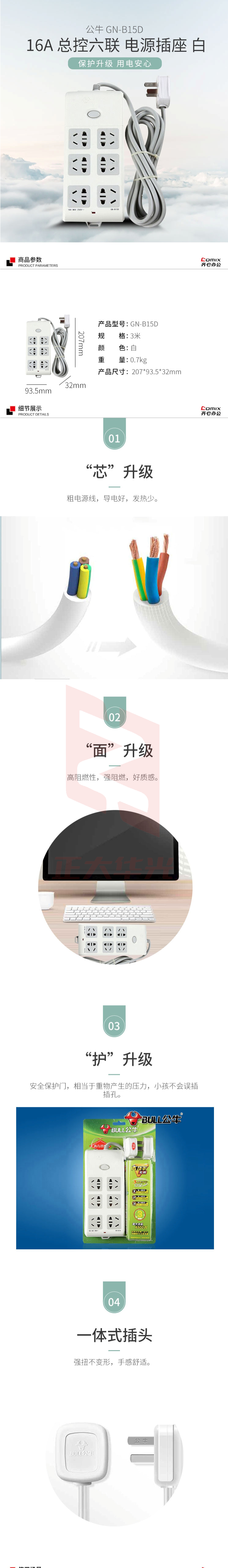 公牛 GN-B15D 16A 3米 总控六联 电源插座 白