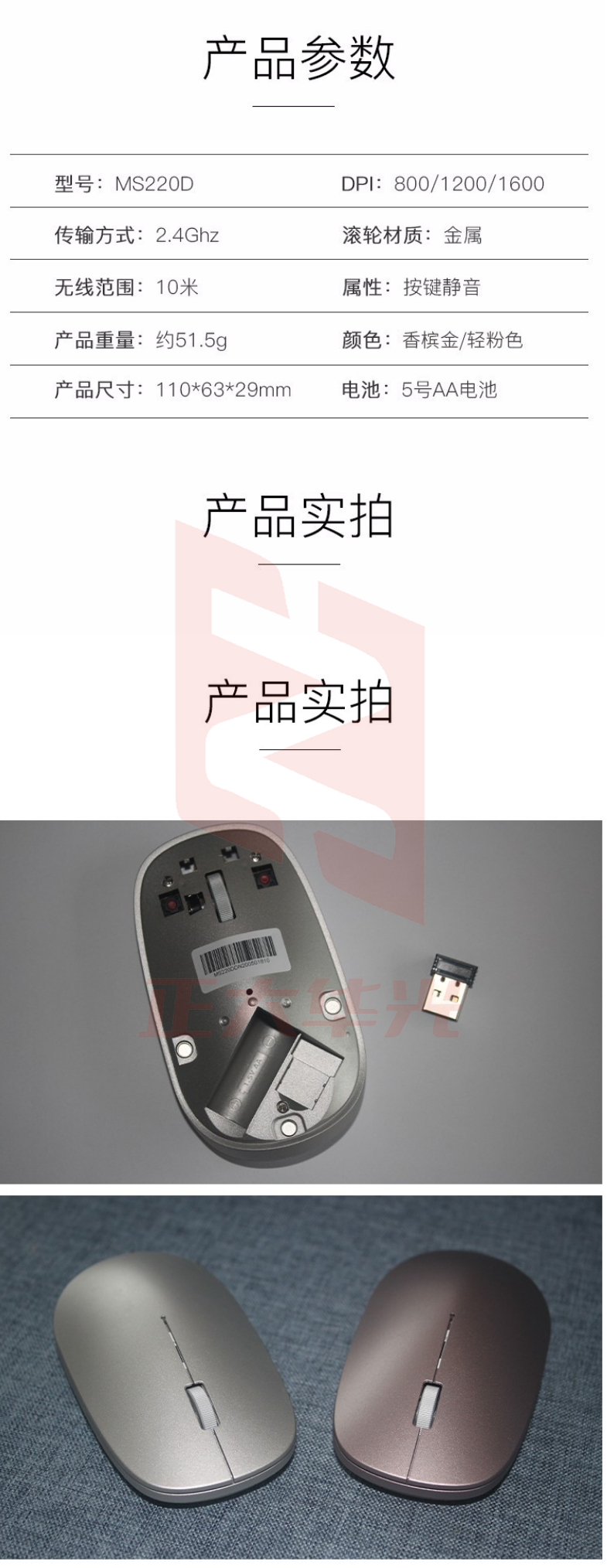 戴尔 原装笔记本台式机通用轻薄静音无线鼠标 多种模式可选 淡银色MS220D