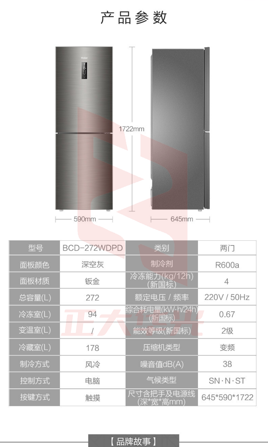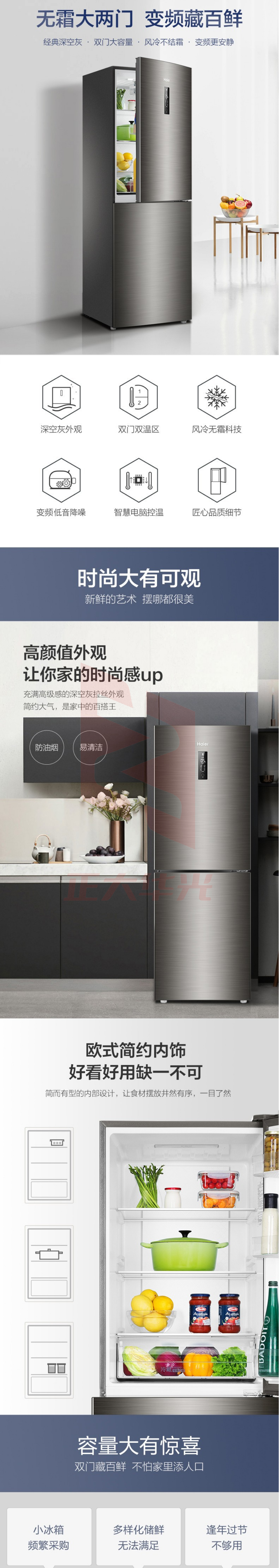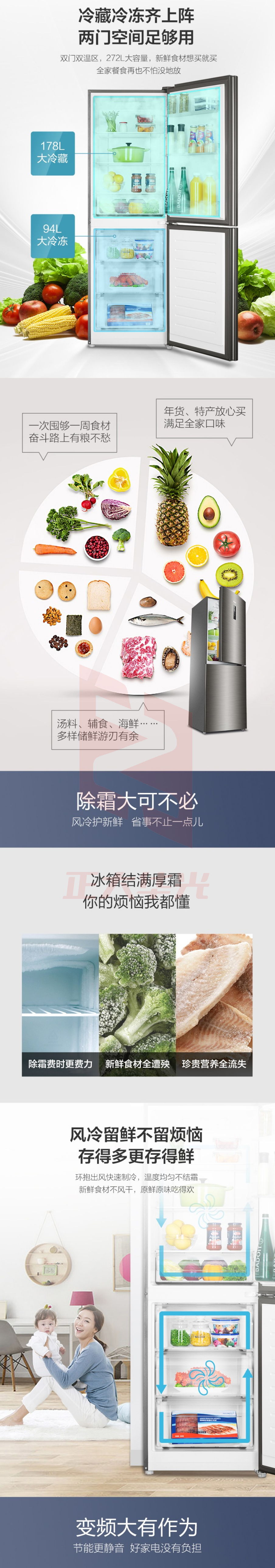 海尔 冰箱 272升两门变频风冷无霜小型家用双门电冰箱宿舍租房BCD-272WDPD