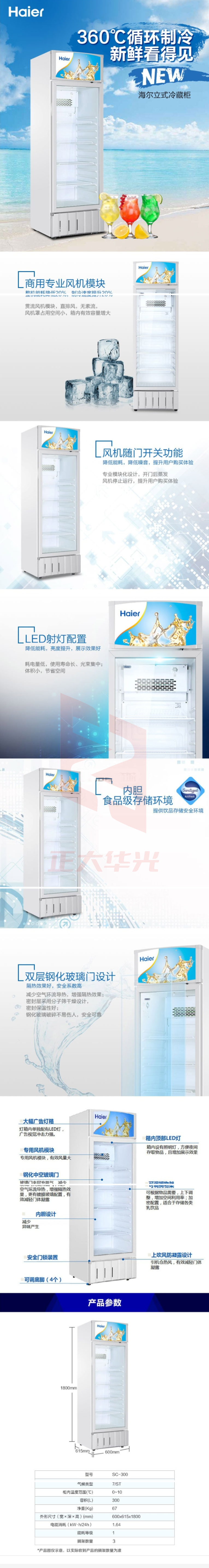 海尔 SC-300 立式单门展示冷柜 276L