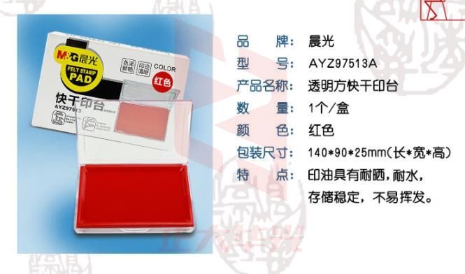 晨光(M&G)文具红色财务专用印台 138*88mm方形透明快干印泥 单个装AYZ97513