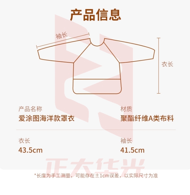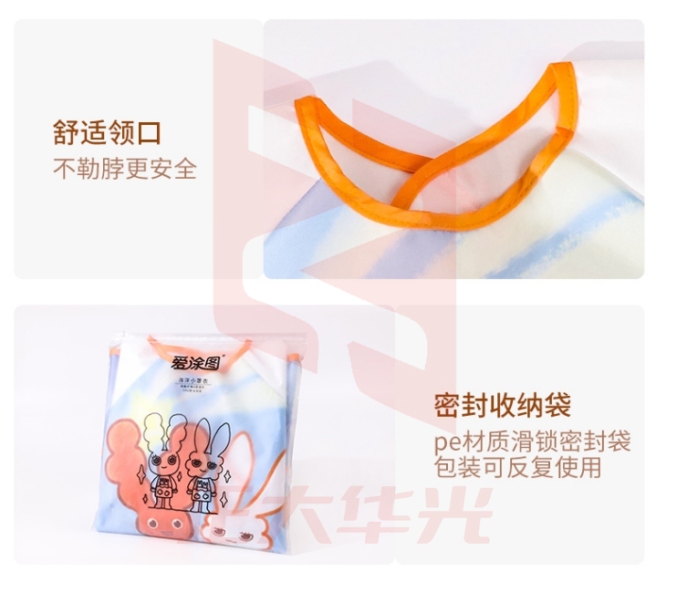 爱涂图 宝宝罩衣吃饭美术画画外穿围裙儿童围兜衣自研面料防水防脏防污防颜料婴儿幼儿园小学生