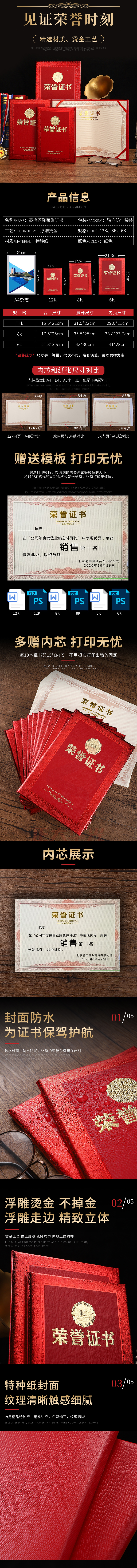 易利丰(elifo)荣誉证书 12开内芯(5张装)