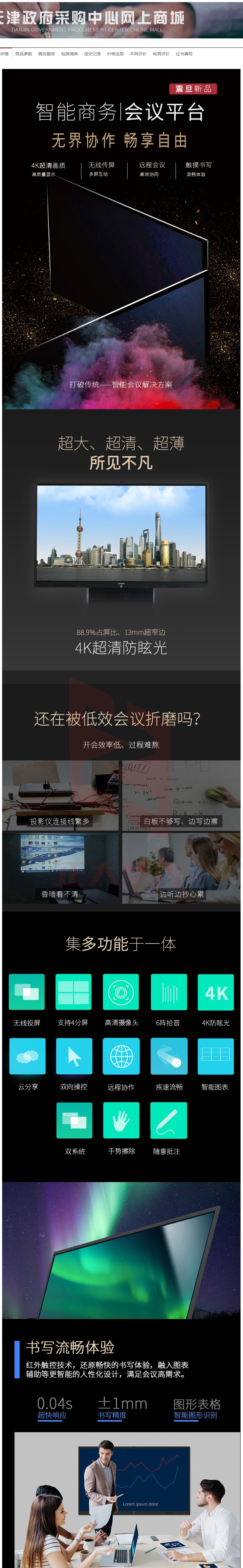 震旦AURORA 智能会议平板 商务大屏 办公电子白板无线同屏交互式平板 SD75CA 75英寸