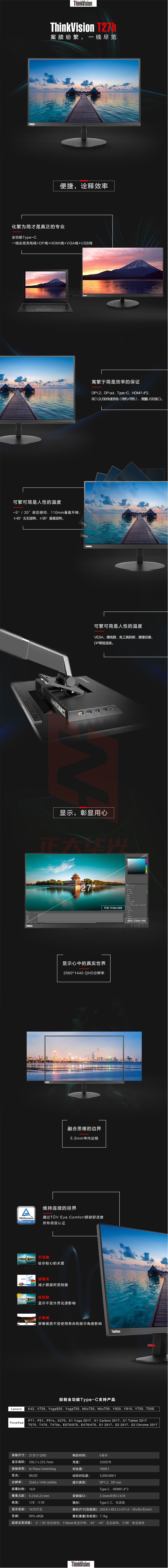联想(ThinkVision)T27h-20 27英寸窄边框显示器