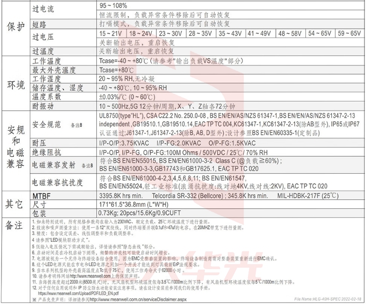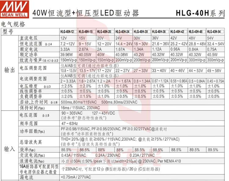 明纬(MEANWELL)HLG-40H-12A恒压恒流型防水 明纬电源 7.2~12V3.33A输出