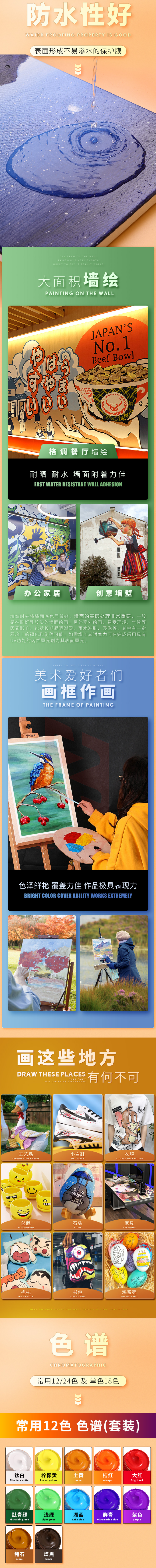 蒙玛特 丙烯颜料36色100ml 美术手绘彩绘墙绘画画丙烯颜料套装 颜料儿童绘画防水SX-MSCH100-36S