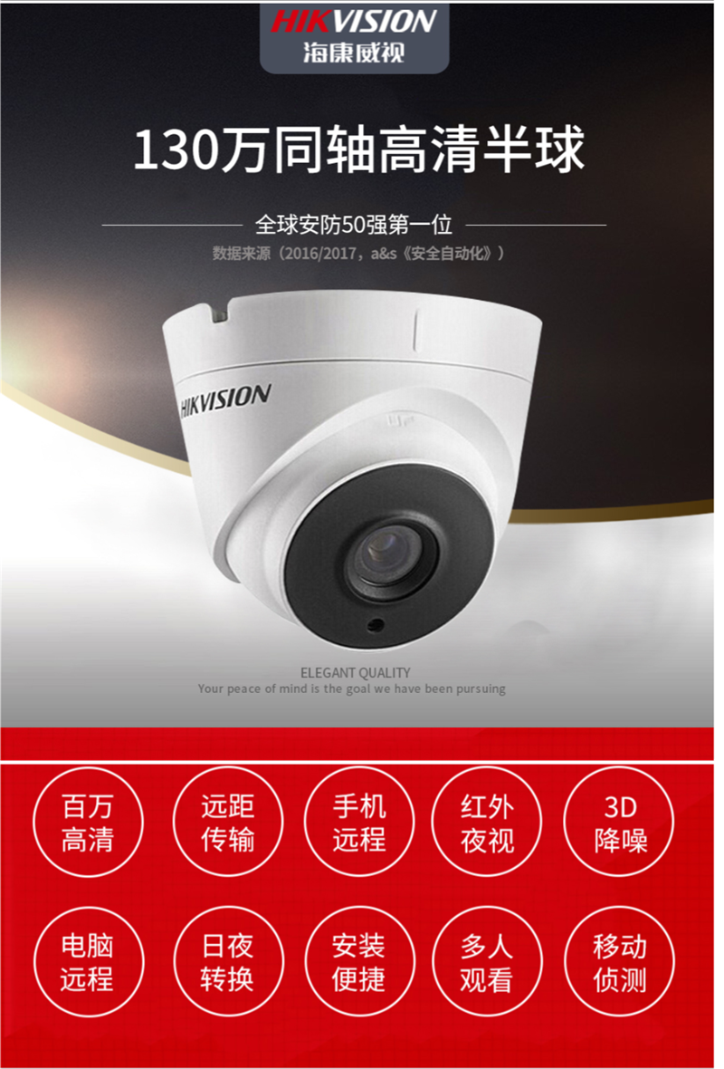 海康 摄像头 130万 DS-2CE56C3T-IT3 2.8MM焦距