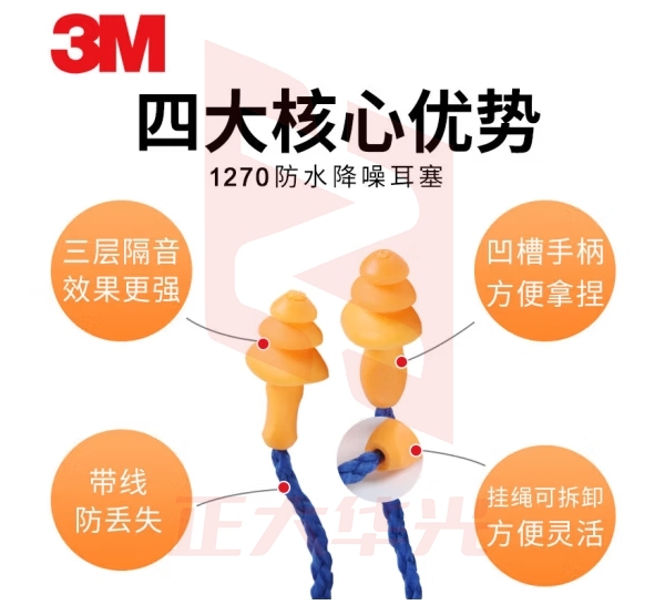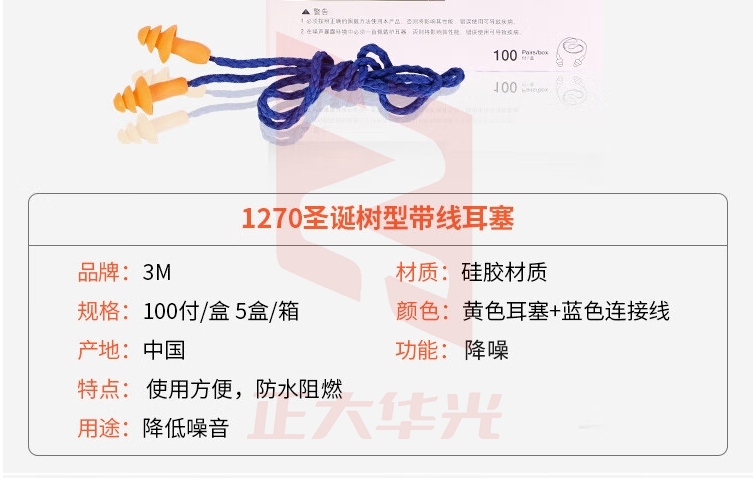 3M 1270降噪耳塞(5副) 防水游泳睡眠学习圣诞树带线耳塞
