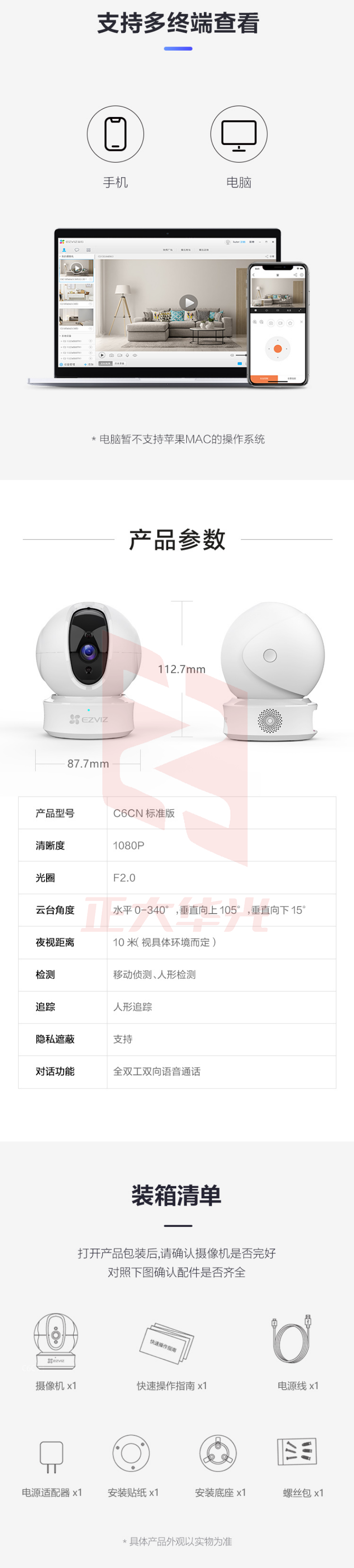 萤石(EZVIZ) C6CN 1080P云台网络摄像机(安装根据现场情况收费)