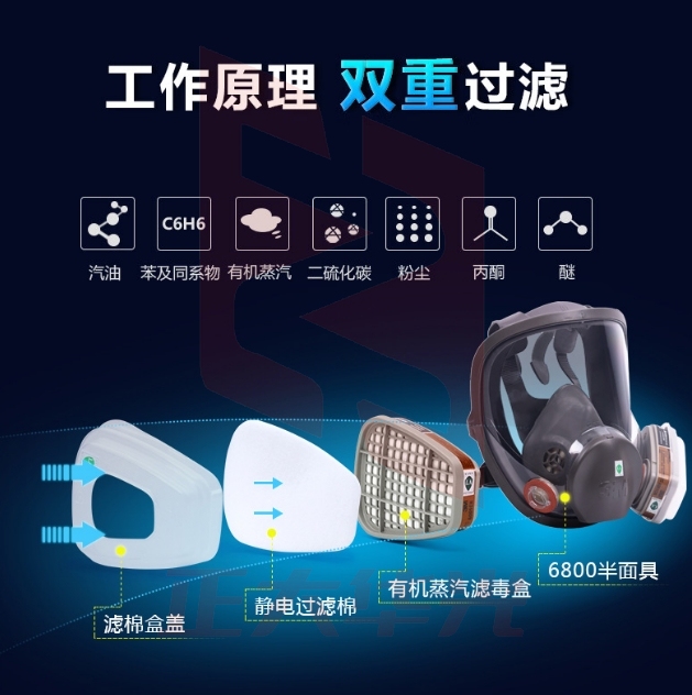 3M 6800全面具+6001CN滤盒+5N11滤棉+501滤棉盖防有机气体及蒸气等防毒套装