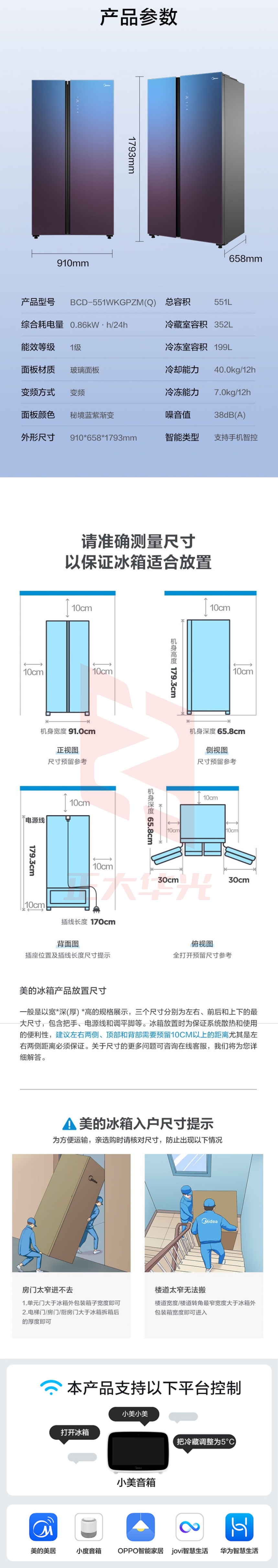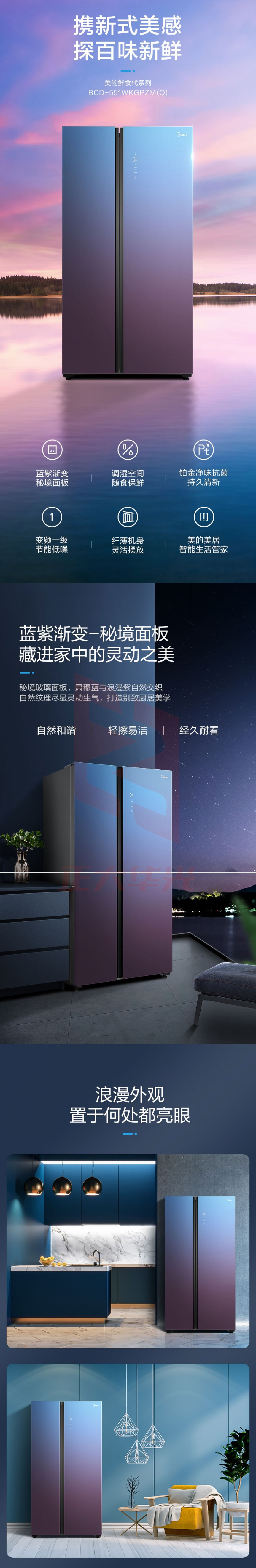 美的 冰箱 BCD-551WKGPZM(Q) 秘境蓝紫渐变