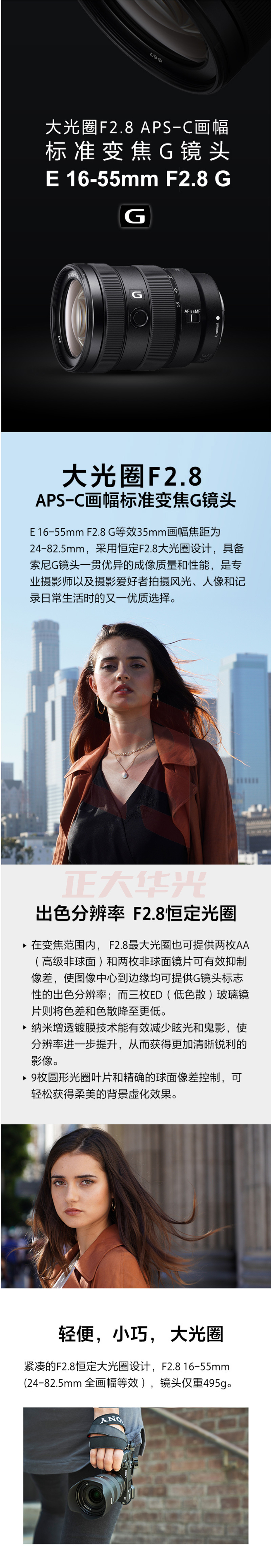 索尼(SONY) SEL1655G (E 16-55mm F2.8 G APS-C)画幅标准变焦G镜头