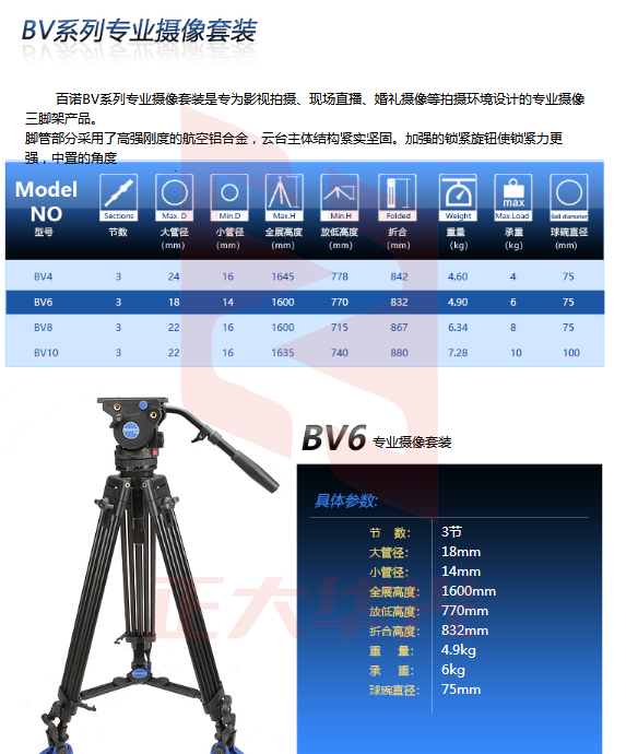 百诺(Benro)BV6 专业摄像脚架套装动平衡阻尼可调 双管三脚架液压云台