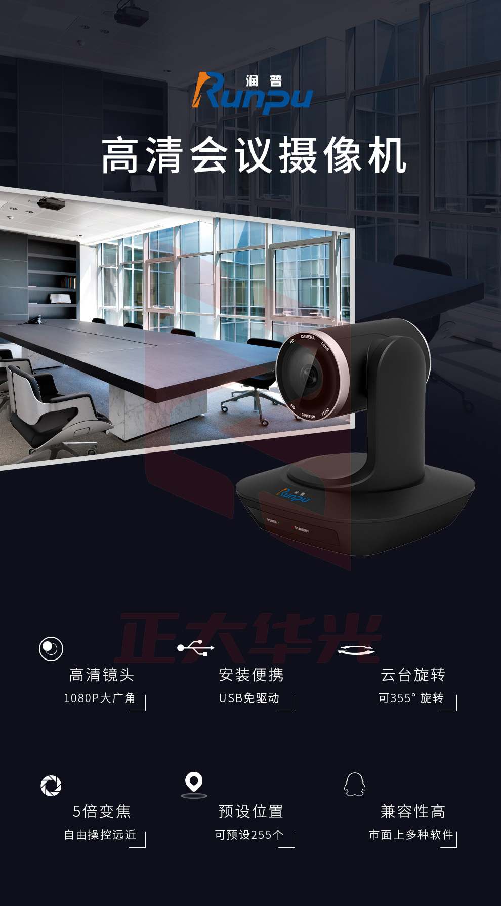 润普/Runpu RP-MS5-1080 5倍变焦大广角高清视频会议摄像头 黑色