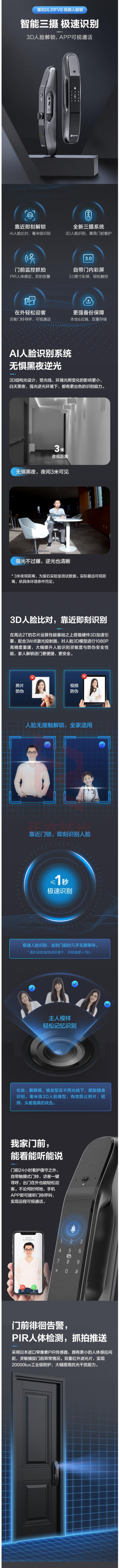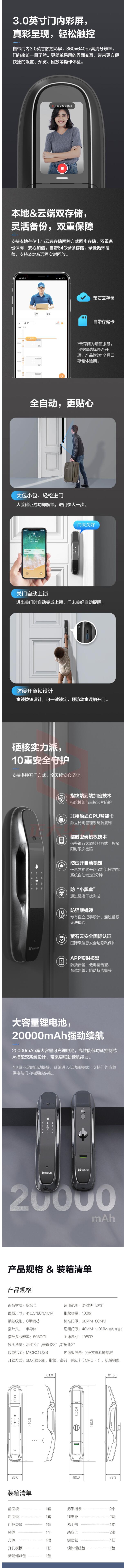 萤石智能锁DL31FVS全自动人脸识别锁 刷脸秒开可视对讲防盗门锁指纹锁电子密码锁