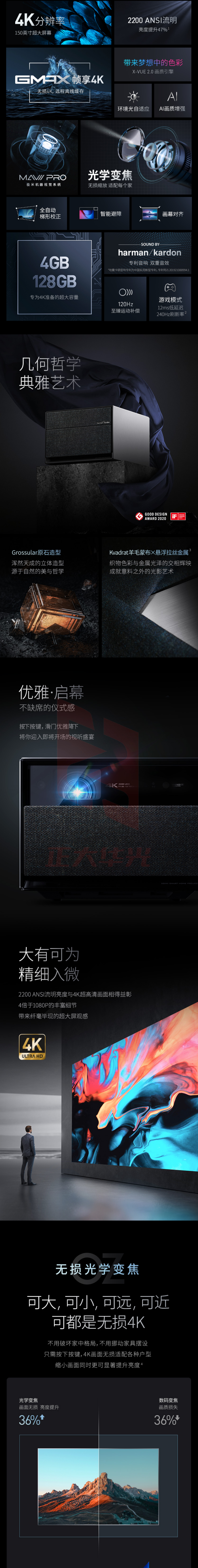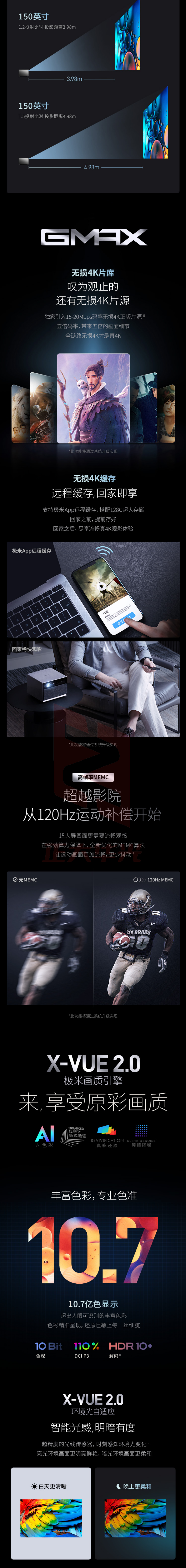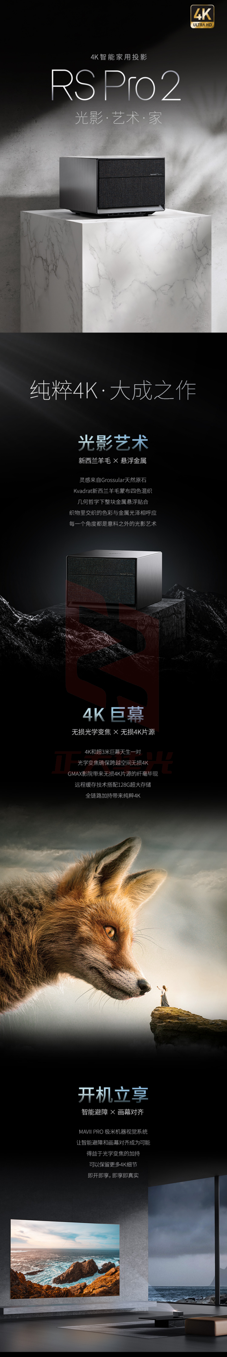 极米 RS Pro 2 晨曦金 4K分辨率 游戏投影 投影仪家用 光学变焦 哈曼卡顿专利音响 画面自适应