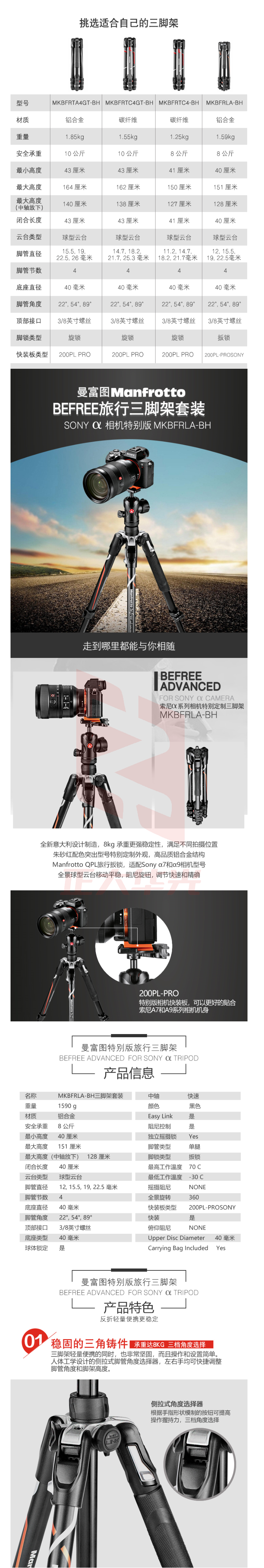 曼富图(Manfrotto)MKBFRLA-BH 三脚架扳锁套装-SONY α相机特别版 Befree Advanced三脚架