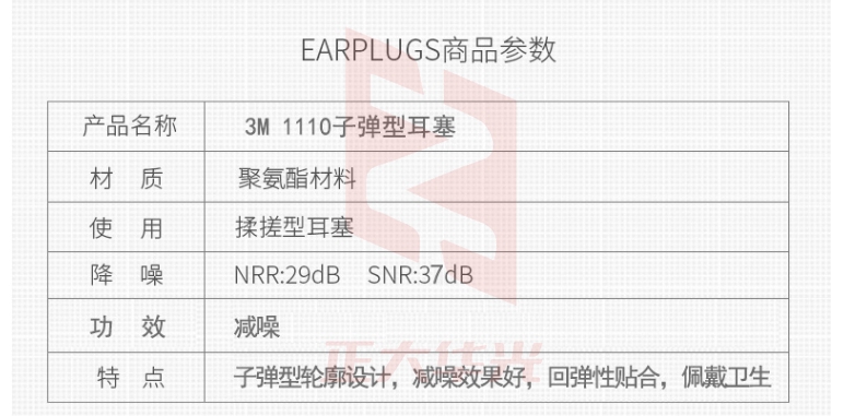 3M 1110防噪音 100副/盒 睡眠耳塞带线学习工作耳塞降噪抗噪便携泡棉耳塞