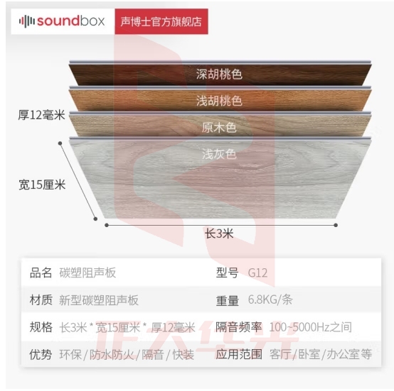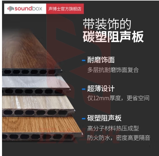 声博士(soundbox) 环保碳塑隔音板卧室家用快装无缝拼接扣板墙面隔音降噪装饰材料 浅胡桃色【0.45平米/片】现货