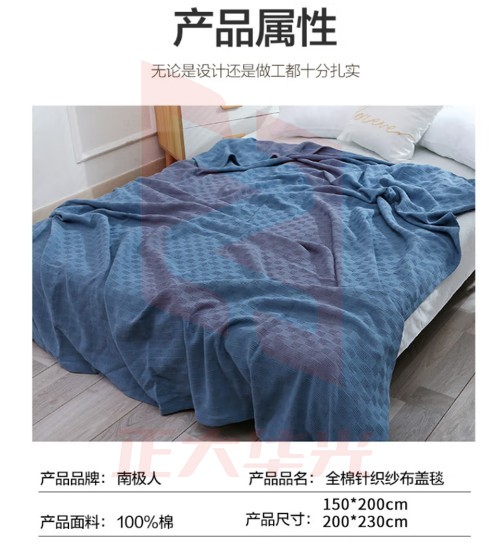 南极人毛巾被 全棉纱布毯子毛毯可水洗空调被夏凉被纯棉午睡毯