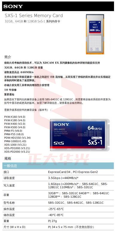 索尼(SONY)SBS-64G1B/C SXS 64G存储卡/内存卡