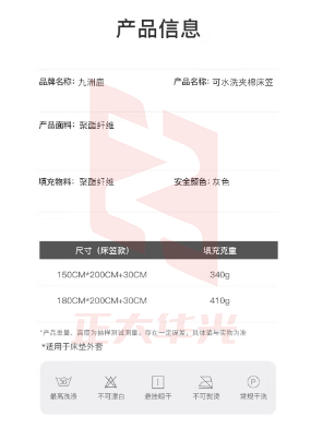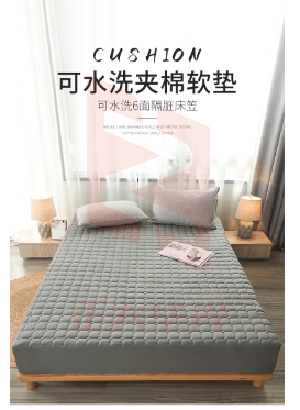 九洲鹿床笠1.8米床夹棉床罩可水洗床垫套防滑床垫保护套浅灰