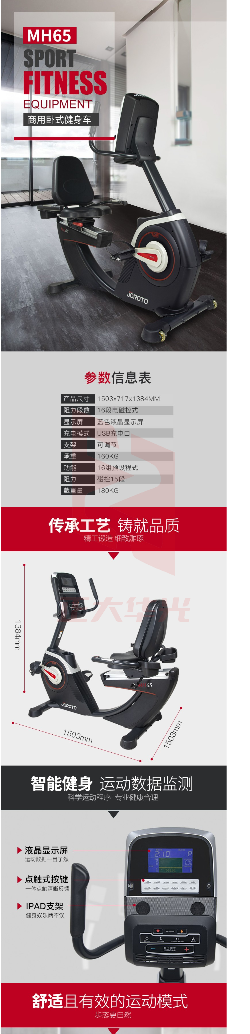 JOROTO捷瑞特健身车 商用卧式单车静音电磁控中老年人健身器材 MH65