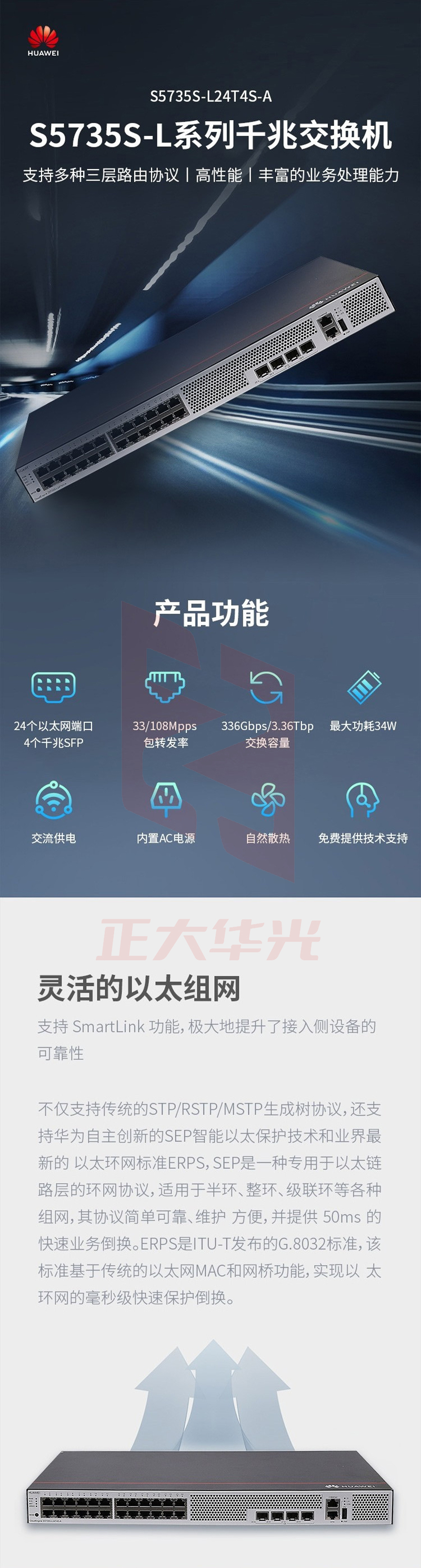 华为(HUAWEI) S5735S-L24T4S-A 24口企业级千兆交换机(24个10/100/1000BASE-T以太网端口