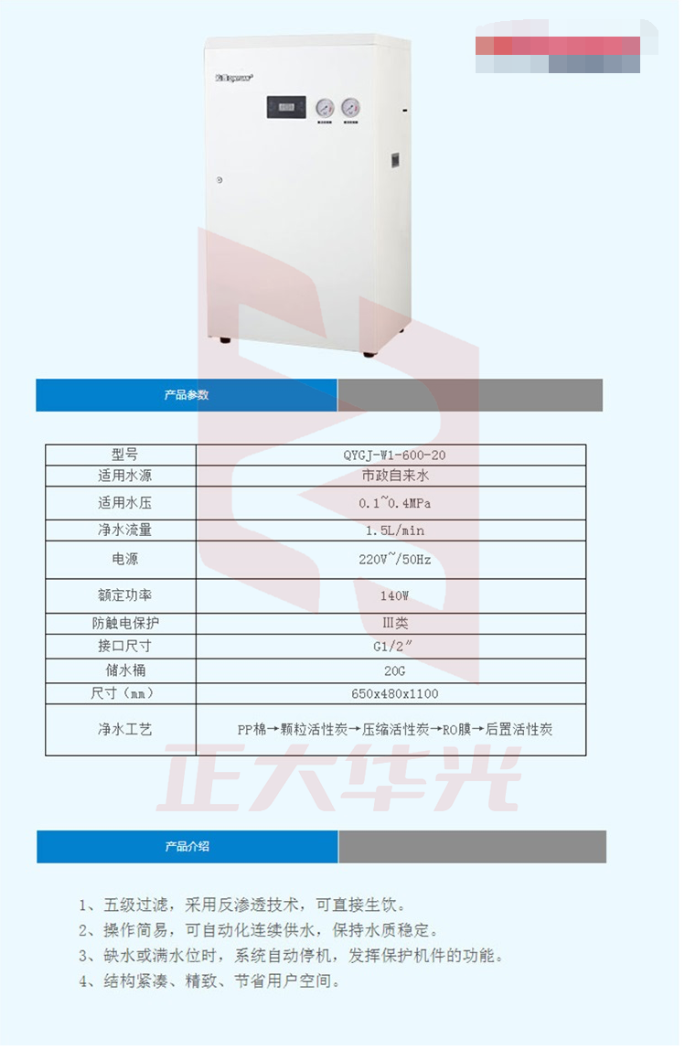 沁园 QYGJ-W1-600-20 反渗透净水设备