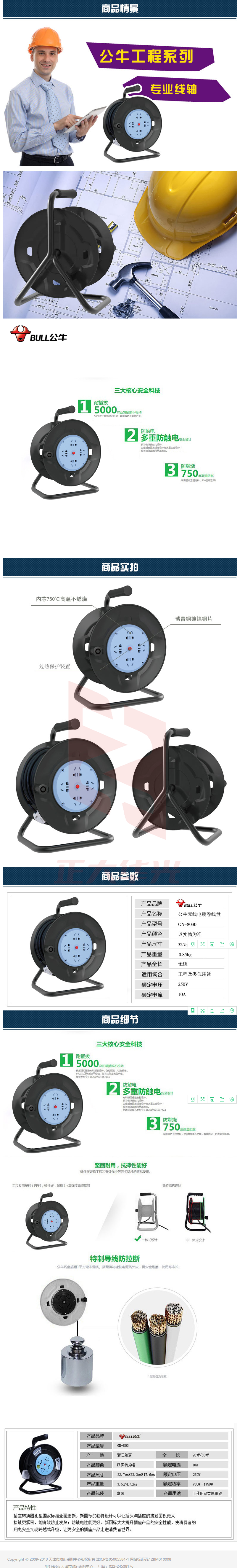 公牛 过热保护电缆卷盘插座/插排 GN-8030 4位无线卷线盘工程专用(需自行接线和插头)30米
