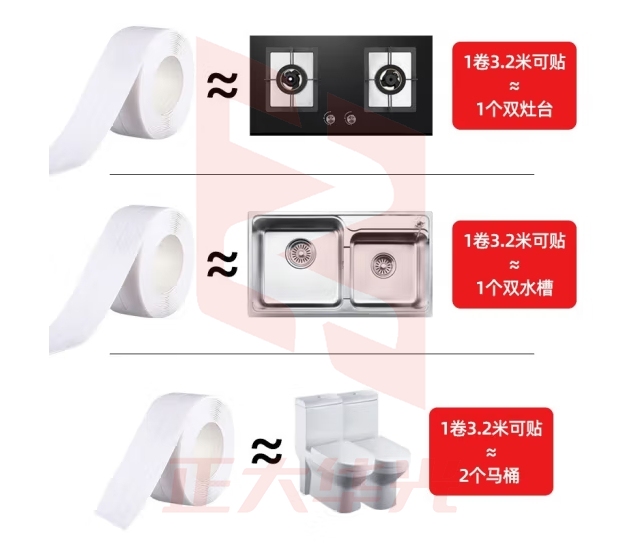 斯图美缝贴防水贴防霉厨房水槽洗碗灶台挡水条卫生间马桶边缘缝隙 单折白色(宽38mm*长3.2米)
