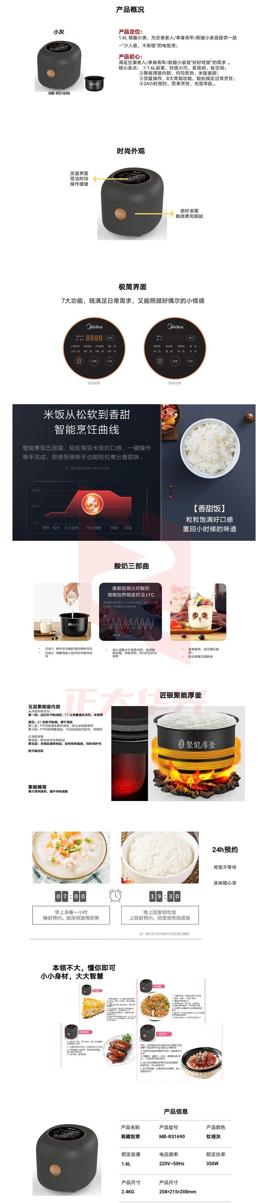 美的 1.6L家用智能预约触摸屏迷你小容量酸奶蒸煮饭烧粥保温 RS1690
